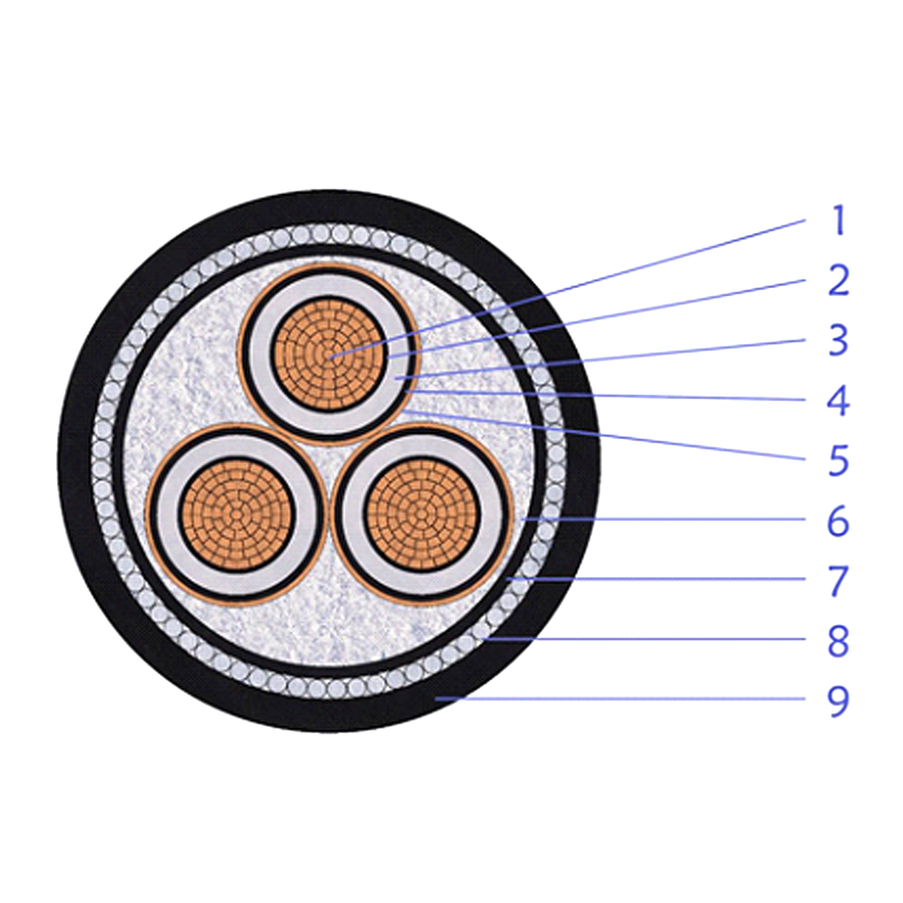 La disposición del núcleo ensamblado, junto con el revestimiento de PVC, forma una estructura de cable estable e integrada adecuada para la transmisión de energía de media tensión.